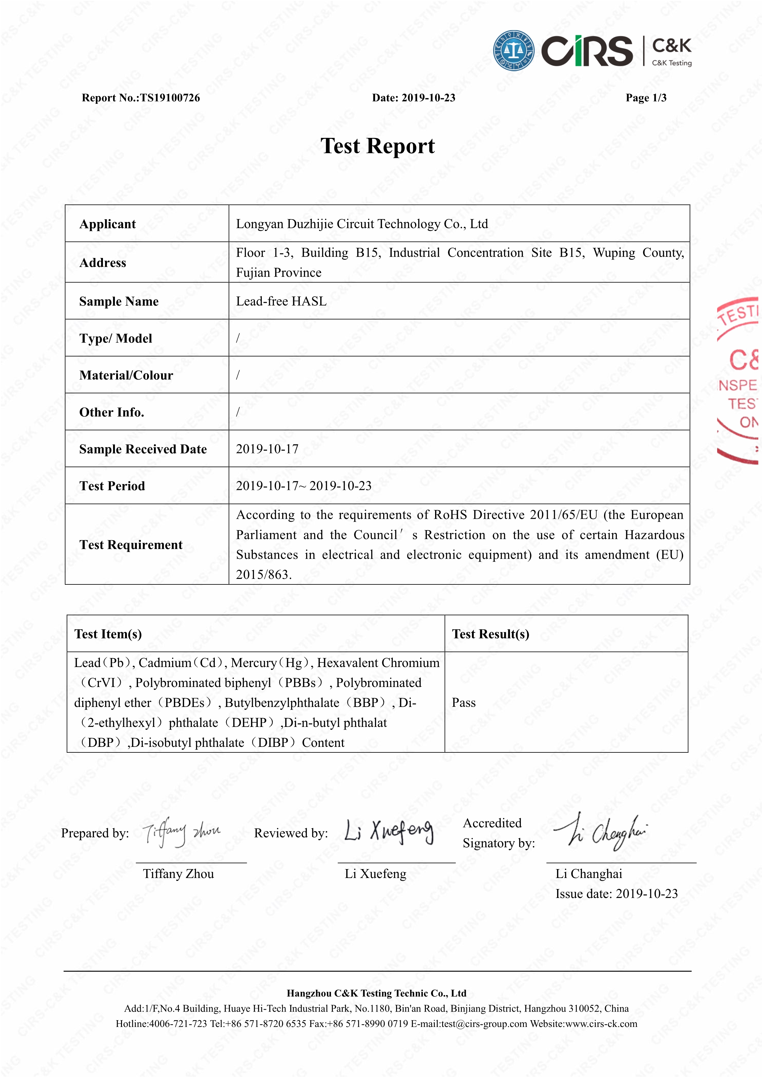 工廠搭建了ISO-9001、T/S16949、ISO14001的管理體系并通過認證,產品符合CQC、UL、IPC、RoHS等